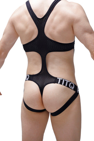 Ein Brustharness, ein Bodysuit-Tanga, ein Jockstrap – alles zugleich für ultraerotische Herrenunterwäsche. Leicht transparentes, durchbrochenes Material.