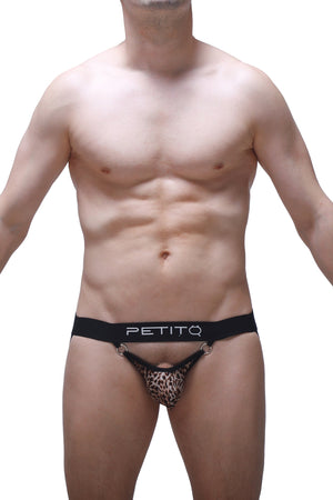 Jockstrap mit kleiner, supertiefer Fronttasche und Aussparung am Schambein. Kleine Ringe auf der Vorderseite. Tasche mit Panther-Print, um Ihre tierische Seite zum Vorschein zu bringen.