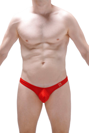 Bequemer roter Tanga mit schöner runder Tasche vorne. Leicht durchbrochenes, atmungsaktives Material.