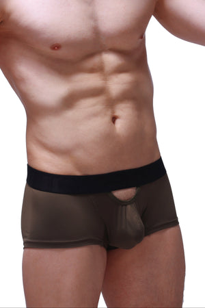 The Aguts PetitQ Boxer Briefs in Dark Olive Green are comfortable underwear designed to look like classic boxer briefs, but with an unexpected touch of seduction at the front.