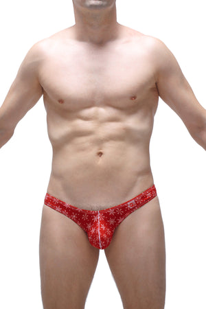 Red thong in stretchy modal to perfectly hug your bump at the front. Snowflake print.