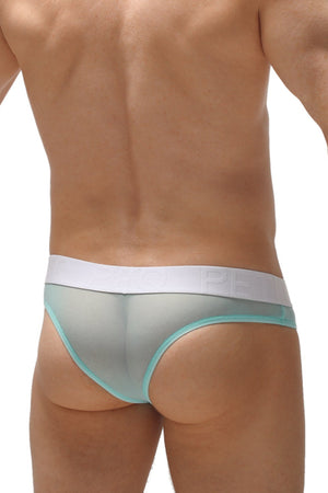 Mini slip bikini en maille pastelle transparente. Bien découvert à l'arrière pour laisser voir votre joli fessier.