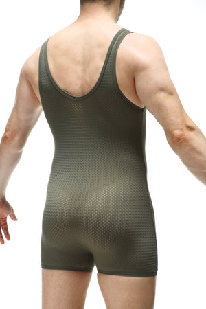 Confortable et super sexy body vert foncé bien bas sur le torse. Matière légèrement ajourée qui fait comme une seconde peau.